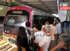 Commuters wait to board Namma Metro train at Byappanahalli after the inauguration of Namma Metro, in Bangalore on Thursday. KPN
