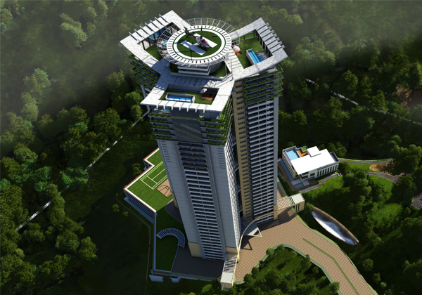 Apart from world class amenities every apartment will have a lavish lay out, both functional and well ventilated. The efficient lay out and the sensuous interiors of the apartments are simply the symbol of high living. The circulation pattern within the apartment provides privacy to the bedrooms. Intelligent planning ensures service entry directly to the work area/kitchen from the floor lobby. The grand 60 feet cantilever double height porch flanked by cascading waterfall and extensive greenery awaits its inhabitants, to give that feeling of being in another world altogether. Spacious lobbies at every floor, sky gardens at regular intervals and a majestic entrance lobby are some of the luxury features which are sure to ensure a timeless impression to this signature architectural marvel.